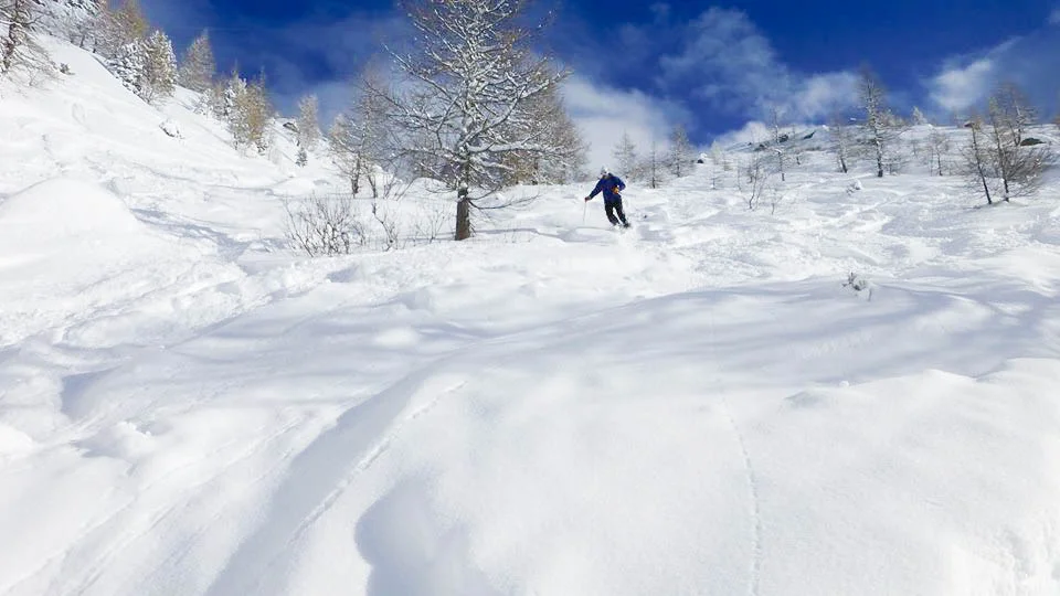 This year's Chamonix fairytale started immediately upon our arrival, when heavy snowing greeted us at the exit of the Mont Blanc tunnel. Chamonix was covered with 40 centimeters of fresh snow and we instantly started dreaming of the powder that was piling up on the slopes. We could not wait to decide which slopes to hit next morning. But it was still snowing heavily when we woke up. Still, we decided to draw some lines and hoped for the best – but many lifts were not working. We decided for Flegere, where we made a ride or two, and then used the connecting gondola to Brevent. There we found some waist-deep fresh powder and despite the fog had an amazing time. We split on the second day. Some of headed for Le Tour and some for Aguille du Midi, where we stopped at the middle station and skied down to the valley. Both groups enjoyed some wonderful powder.