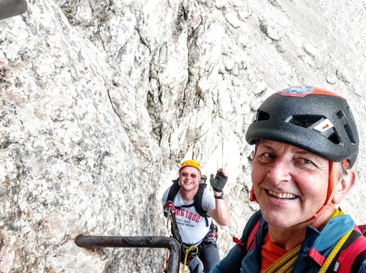 With that there was about 200 vertical meters to the top. The clouds blew over, so we had a fantastic view of the peaks of the Kamniško-Savinjske alps.